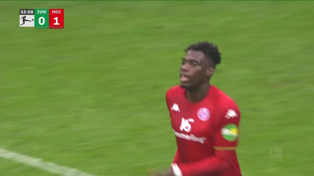 第52分钟,不莱梅在中场组织时出现致命失误。美因茨快速断球后发动反击,谢拉尔多·贝克尔在右路带球长驱直入,观察到位后送出一记低平球传中,皮球穿越不莱梅整条防线来到门前。韩国中场李在城拍马赶到,在无人防守的情况下轻松推射破门。皮球入网的瞬间,贝克尔高举双臂庆祝,而不莱梅球员则呆立在原地——比分来到0-2。-11-15