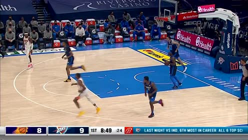 次节:雷霆试图追分,太阳保持压制。 次节开局雷霆发起反扑,霍姆格伦在内线造成杀伤,两罚全中追至32平。布克迅速回应——第2分30秒,布克弧顶持球,面对防守人连续胯下运球后干拔三分命中,太阳重新以35-32领先。