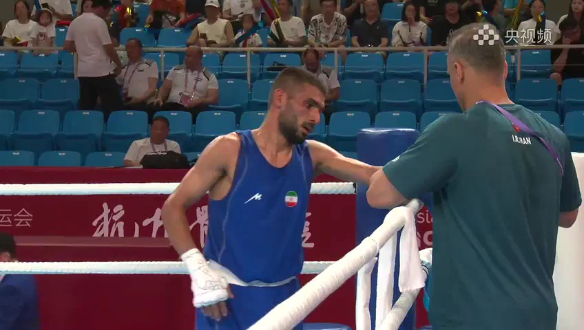 第三回合成为体能的分水岭。双方在此前的拼拳中消耗过大,出拳频率和幅度均有明显下降。计县放弃远距离摆拳,转而缩短距离后再出拳,每一次近身都带着更具压迫感的意图。宋亚东的年轻腿脚依然不慢,但体能瓶颈已经让他的防守动作开始出现迟滞,原本灵动闪躲的体态多了几分沉重。奥体中心内,支持宋亚东的年轻观众仍在竭力呐喊,但声浪中渐渐掺杂了焦虑;支持计县的老拳迷则握紧拳头,目光笃定,似乎已经看到了结局。